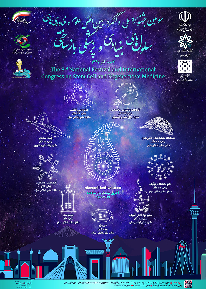 سومین جشنواره ملی و کنگره بین المللی سلول های بنیادی و پزشکی بازساختی" در تاریخ 3 تا 10 آذر 1397 در محل سالن همایشهای اجلاس سران تهران برگزار خواهد شد.