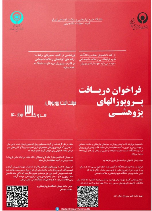 اخبار > فراخوان دریافت پروپوزال های پژوهشی