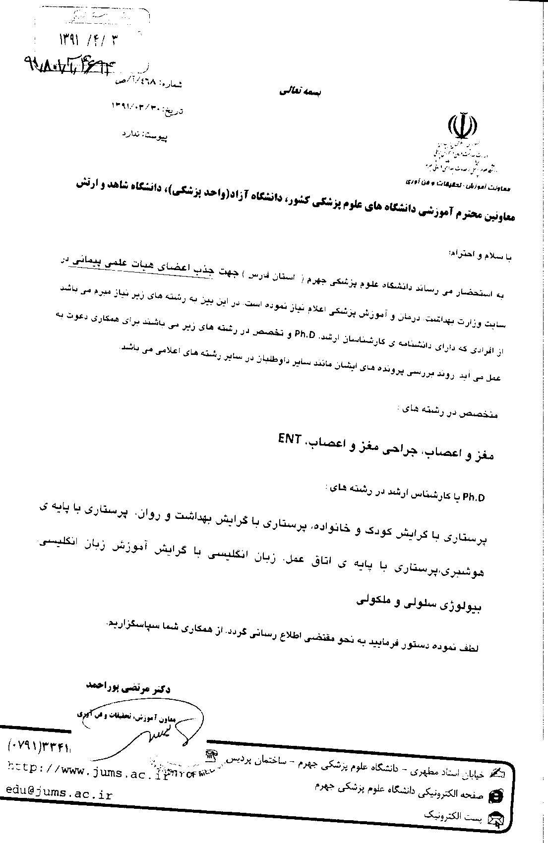 - اطلاعیه ثبت نام حضوری پذیرفته شدگان آزمون دكتري تخصصي سال ۱۴۰۲