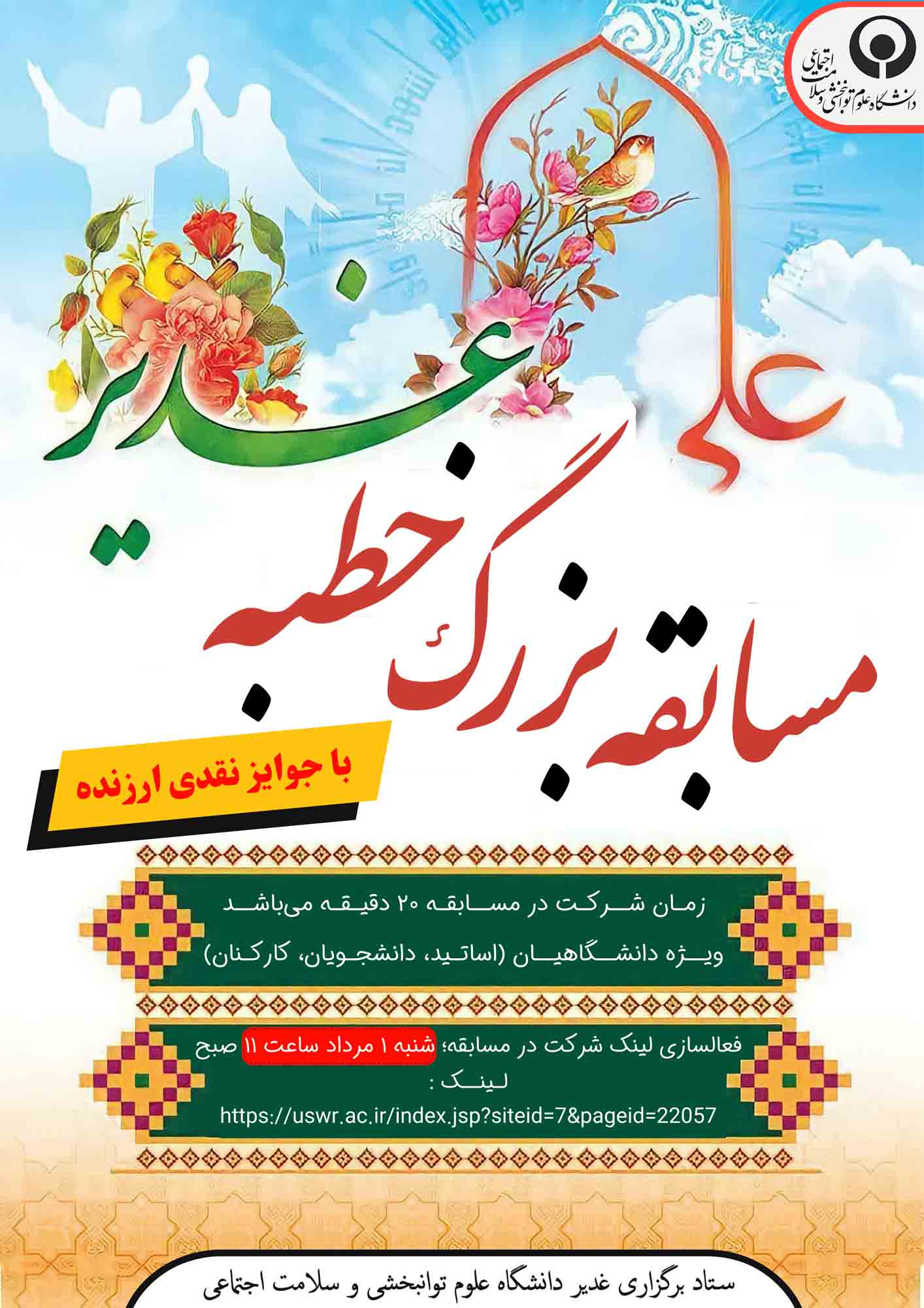اخبار > اسامی برگزیدگان مسابقه خطبه غدیر اعلام شد