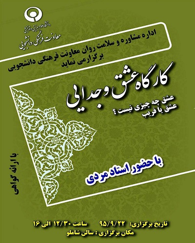 اخبار > کارگاه آموزشی " عشق و جدایی " ، روز دوشنبه برگزار می شود